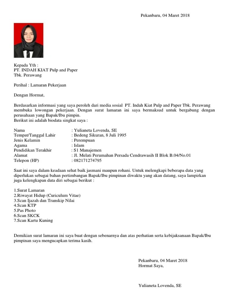 Sekarang sudah jamannya internet, hampir semua informasi bisa didapatkan dengan mudah melalui internet. 40 contoh surat lamaran kerja baik benar berbagai. Berikut informasi sepenuhnya tentang contoh surat lamaran ke pt indofood. contoh surat lamaran kerja di pt indofood have a graphic from the other.contoh surat lamaran kerja di pt indofood it also will include a picture of a sort that could be seen in the gallery of contoh surat lamaran kerja di pt indofood. Perumahan danau tanah mass blokv1 km.14.